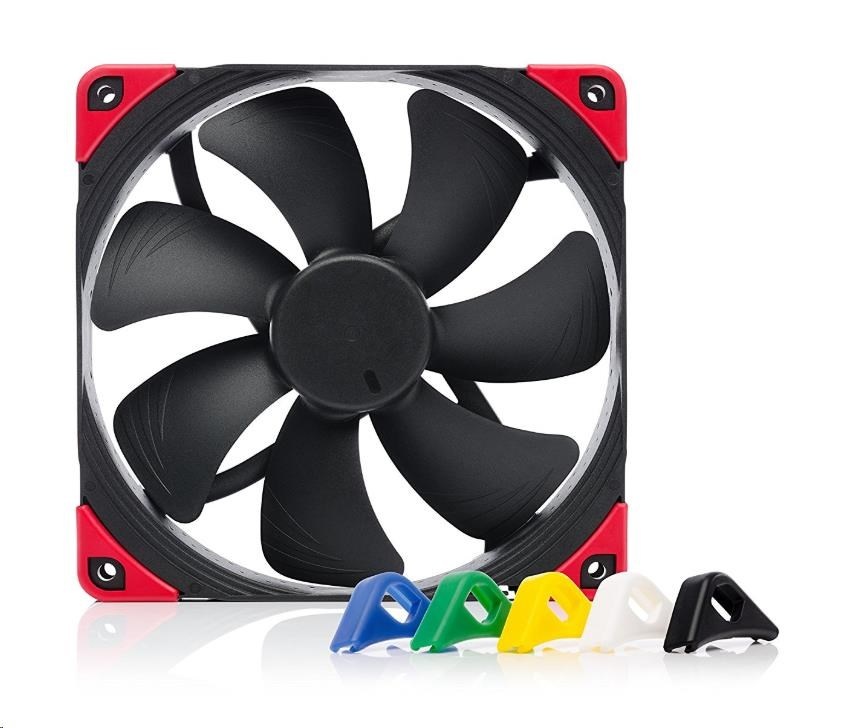 ventilátor, rozměry 140x140x25mm, max. hlučnost 24.6dBA, průtok 140.2m3/h, 300 až 1500 otáček, 4pin PWM, ložisko SSO2, edice Chromax - vyměnitelné barevné antivibrační podložky