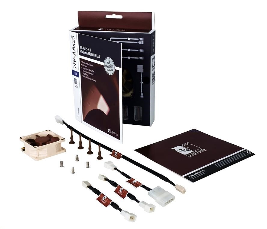 NOCTUA Ventilátor NF-A6x25-FLX, 60mm, hnědáTyp chladiče:Do PC skříně; Využití chladiče:Do PC skříně; Velikost ventilátoru:60x60; Barva podsvícení:bez podsvícení; Napájecí konektor:3pin.
