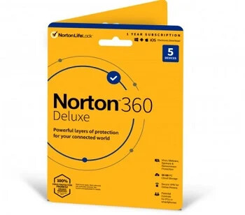 Norton 360 Deluxe je software pro ochranu před počítačovými viry a jinými škodlivými softwary. Je dodáván s cloudovým úložištěm o kapacitě 50 GB a Secure VPN pro bezpečné brouzdání po internetu. Licence je určena pro jednoho uživatele na 5 zařízení. Je platná po dobu 3 roků.