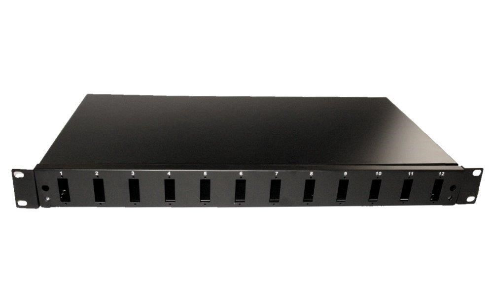 Optická vana výsuvná 1U, 12x SC duplex s kazetou na 24 svarů, černá