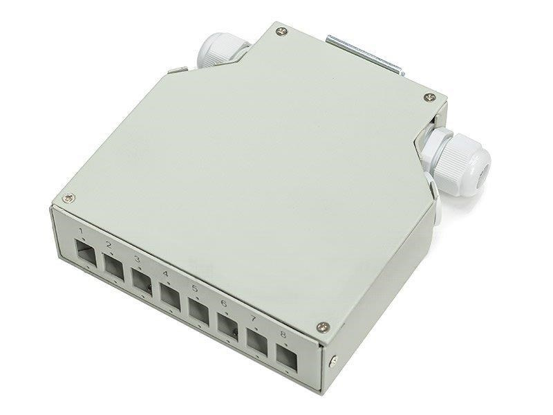 Optický rozvaděč na DIN lištu 8x SC simplex (8x LC duplex) s hřebínky na 16 svarů