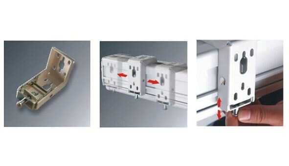 - Montáž na stěnu a strop pomocí posuvných držáků