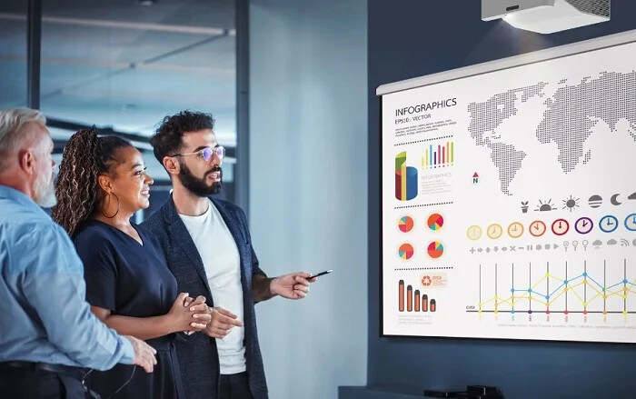 Ekologický kompaktní ultra krátkovzdálený laserový projektor. Technologie zobrazení DLP, rozlišení 1080p Full HD (1920x1080), svítivost 4,000 lumenů, kontrastní poměr 300,000:1, 16:9, korekce zkreslení +/-5°, počet zobrazitelných barev (milióny) 1073.4, horizontální skenovací frekvence 15 ~ 140Khz, vertikální skenovací frekvence 24 ~ 120Hz, velikost obrazovky 2.03m ~ 3.3m (80" ~ 130") diagonálně. Rozhraní: Vstupy 2 x HDMI 2.0, výstupy 1 x USB-A power 1.5A, 1 x Audio 3.5mm, ovládání 1 x RS232, 1 x RJ45, 1 x 3D sync.