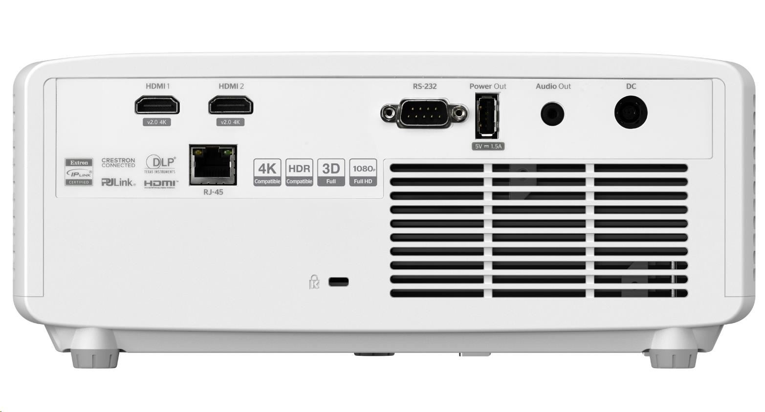 Dá se umístit na strop, na stůl a na zem. Ve výbavě má i nožičky, díky kterým se umisťuje na zem. Připevnění ke stropu se osvědčí v přednáškových sálech a učebnách. Položení projektoru na stůl se osvědčí, co se snadné manipulace týče. Projektor je opatřen o integrované reproduktory. Lze jej ovládat odkudkoliv z místnosti díky dálkovému ovládání. Pro připojení slouží konektory HDMI 2.0. Mezi zahrnuté konektory patří RJ-45 (LAN) a sluchátkový výstup.