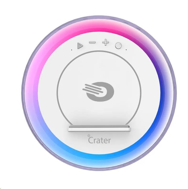 Crater-9 využijete také jako přenosný reproduktor, který díky Bluetooth snadno spárujete s mobilem, tabletem či počítačem, kde máte uloženy své oblíbené hudební kousky. Ať z něj znějí taneční skladby, hudba k jógovým sestavám či večerní ukolébavky, Crater-9 vás mile překvapí čistými a jasnými zvuky s dynamickými basy o výkonu 5 W (RMS). Ráno vás zvuk budíku ze smartphonu spolehlivě přebere iz toho nejtvrdšího spánku. Přes den reproduktor využijete i při video či konferenčních hovorech.