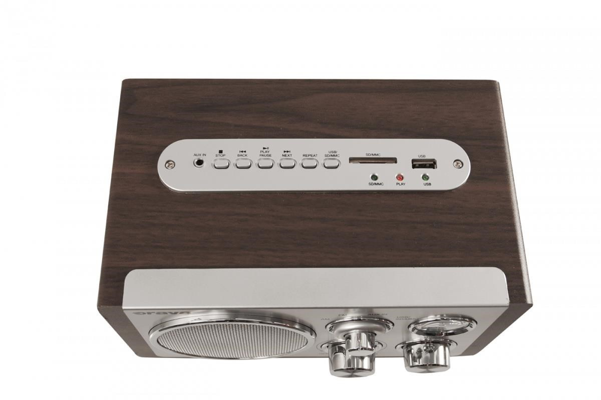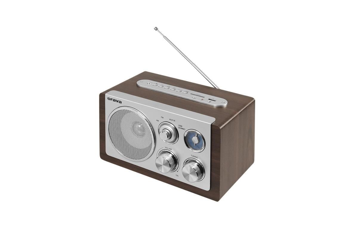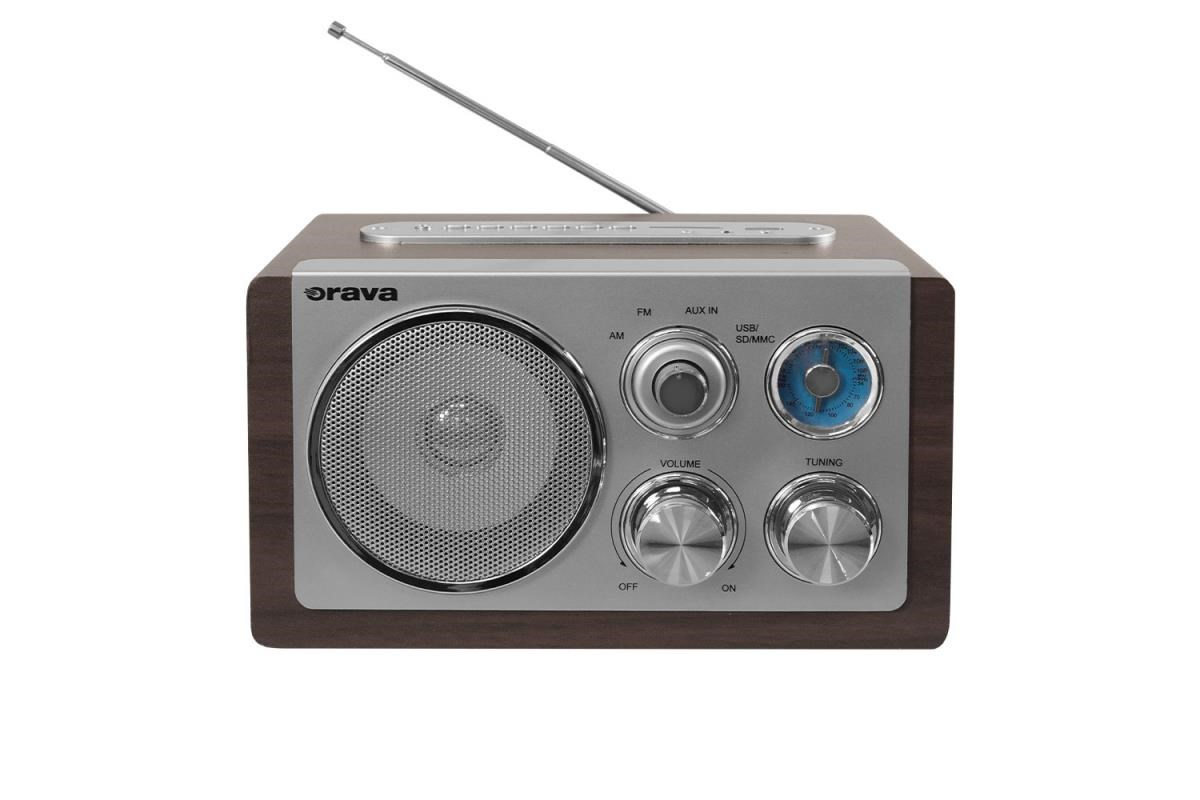 Orava RR-29 A rádio, 1 x 3,5W, AM / FM rádio, USB, AUX vstup, SD karta, hnědá / stříbrnáManuální ladění rádiových stanic, teleskopická anténa, USB vstup, zabudovaná čtečka S.