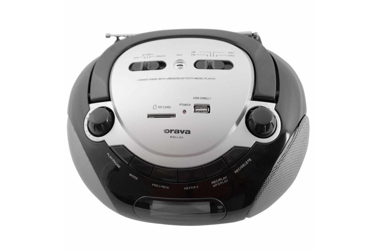 Orava RSU-05 přehrávač, USB/SD přenosný, Bluetooth, AM/FM/SW1/SW2 rádio, výstup na sluchátka, LCD displejPřenosný USB/SD přehrávač s rádiem a bluetooth, USB vstup a SD/MMC slot, AM/FM/SW1/SW2 rádio s digitálním zobrazením frekvence, AUX In konektor pro připojení externího zařízení.