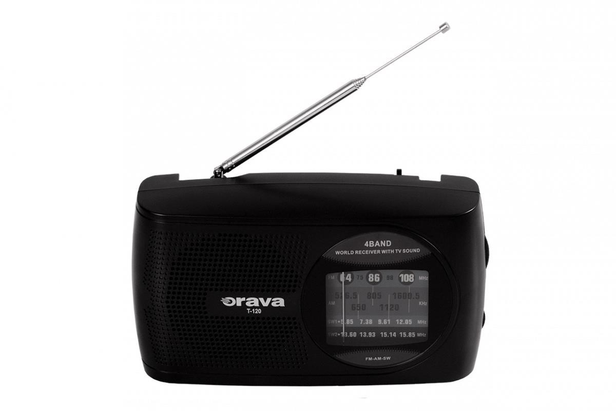 Orava T-120 B přenosný rádio přijímač, 1 W, výstup na sluchátka, AM & FM rádio, anténa, černáPřenosný rádio přijímač, FM / AM / SW rozsah, Duální napájení (síť / baterie), Konektor pro připojen