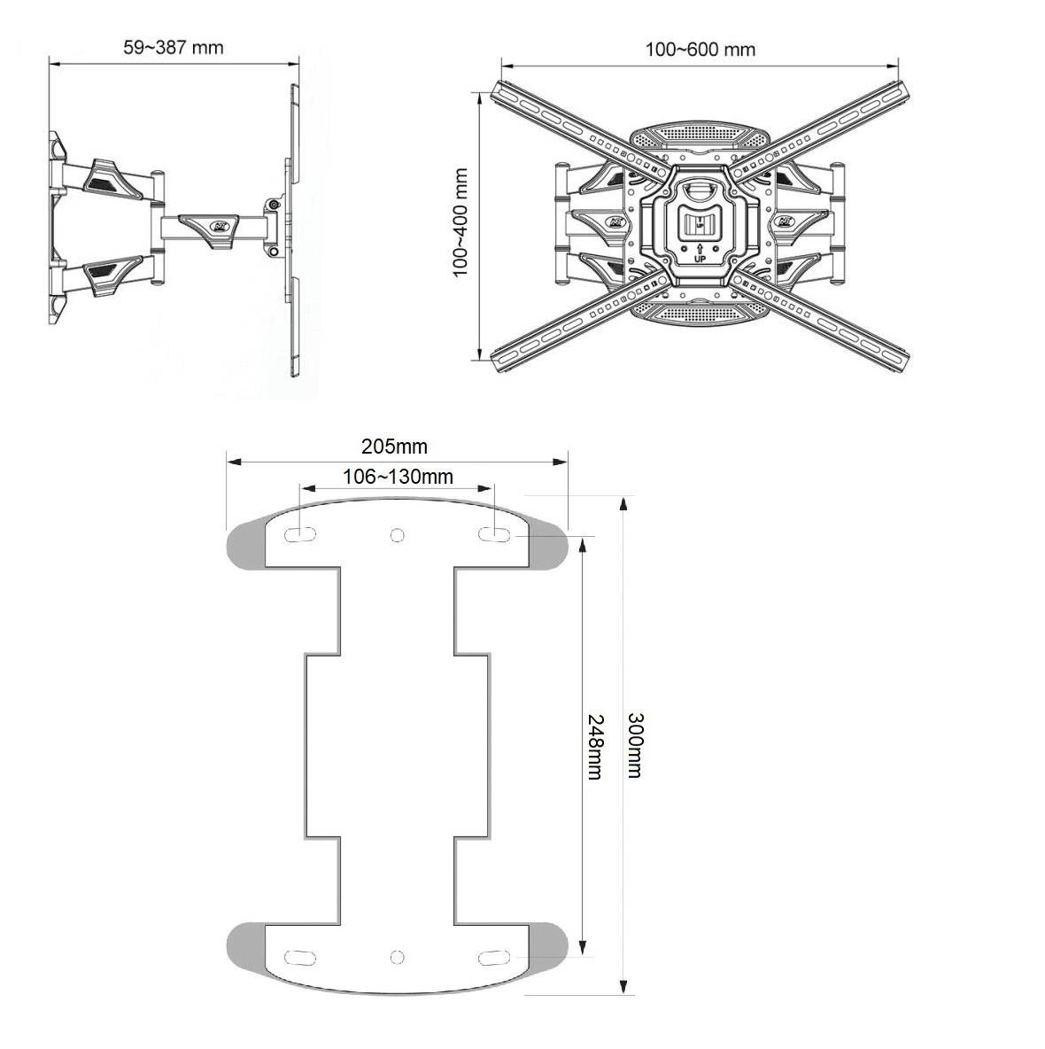 Otočný sklopný držák televize NB NBP5Nástěnný držák špičkové kvality, na Tv 32-70", otočný +/-45°, sklopný +3°/-5°, výsuvný od 6 do 39cm, korekce roviny +/-3°, VESA 100x100 až 600x400, certifikace TUV, ISO9001, úchytky na kabely, nosnost 36,4kg.