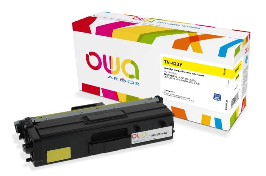 OWA Armor toner pro BROTHER HL-L 8260, 4.000 str., kom. s TN423Y žlutá/yellowTisková technologie:Laserová; Typ produktu spotřebního materiálu:Barevná cartridge/toner/páska.