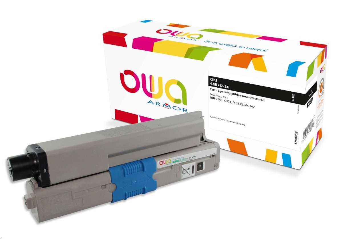 OWA Armor toner pro OKI C301, C321, MC332, MC342, 2200p, 44973536, černá/blackTisková technologie:Laserová; Typ produktu spotřebního materiálu:Černá cartridge/toner/páska.