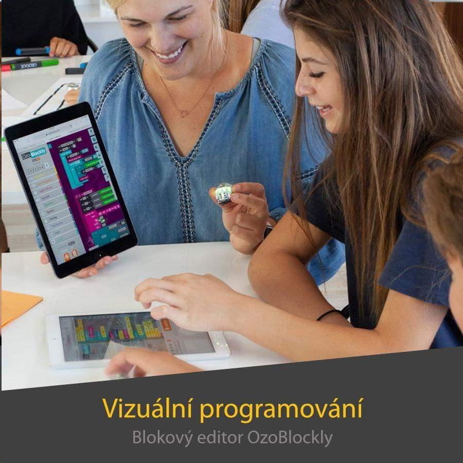 Chcete srandovního robota na ovládání, co se vejde do kapsy? Rádi byste přitáhli děti k informatice? Baví vás nové technologie a chcete si vyzkoušet programování? Začněte s Ozobot Evo, ten zvládne klidně všechno najednou a ještě víc. Jde o promyšlenou výukovou pomůcku, vhodnou pro zájmové i školní vzdělávání napříč předměty i stupni. Malý bot je nadupaný funkcemi, diodami, reproduktory a senzory, přesto jeho baterie vydrží celou vyučovací hodinu. Umí sledovat vodicí čáry a vykonat zakódované příkazy nakreslené na papíře, nebo provede všechno podle jednoduše vytvořeného skriptu, který sami naprogramujete v intuitivním editoru Ozobot Blockly nebo pokročilejším Ozobot Editoru. Zní to složitě? Vůbec z toho nemusíte mít strach. Ovládání je snadné a s přehledem ho zvládnou už 8leté děti i dospělí, kteří se drobné elektronice raději vyhýbají. A na ty vůbec nejlehčí úkoly si troufají i předškoláci! Už od nejnižšího věku tak můžete rozvíjet jejich kreativitu, kritické myšlení, schopnosti pracovat v týmu, kódovat a řešit problémy.