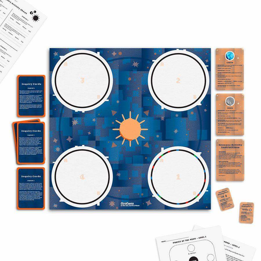 Zjistěte, jak pohyby Slunce a Měsíce ovlivňují různé jevy na Zemi, díky sadě OzoGoes to the Sun, Earth & Moon.