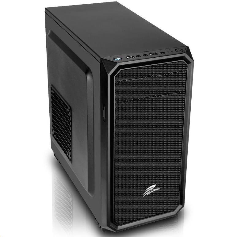 EVOLVEO Shaw 2, case mATX, 1x 120 mm ventilátor, přední mesh panel, prachový filtr, bez zdroje, černáProvedení skříně:Midi Tower; Barva skříně:Černá; Počet pozic 5.25":1; Počet pozic 3.5" (HDD):2; Počet pozic 2.5" (SSD):2; Vybavení PC skříně:Bez integrovaného zdroje, Přední USB panel.