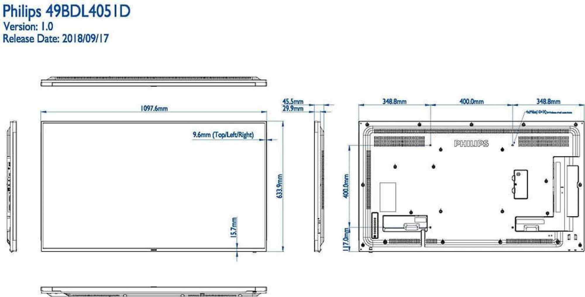 Philips LED display 49" 49BDL4051D/00Úhlopříčka obrazovky ("):49"; Technologie TV:LED; Rozhraní:HDMI; Formát obrazovky:16:9.