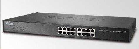 Planet FNSW-1601 SWITCH 16X 10/100BASE-TX16-ti portový přepínač 10/100 Base-TX, Switching, Full Duplex, Auto-Negotiation (10/100 Mbps), rackmount (19), automatická detekce přímý/zkřížený kabel. Power-green funkce pro snížení spotřeby..