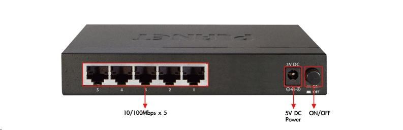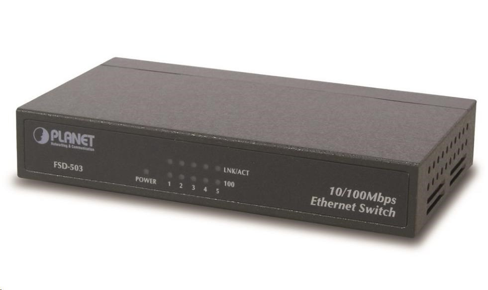 Planet FSD-503 Switch, 5x 10/100Base-TX, 10", kov, fanlessSwitch, 5x 10/100Base-TX, 10", kov, fanless.