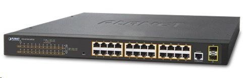 Planet GS-4210-24P2S PoE+ switch 24x 10/100/1000Base-T, 802.3at do 300W, VLAN, SNMP/WEB