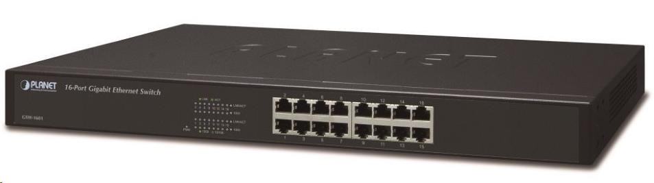 Planet GSW-1601 Switch, 16 x 10/100/1000, kov, rackmountSwitch, 16 x 10/100/1000, kov, rackmount.