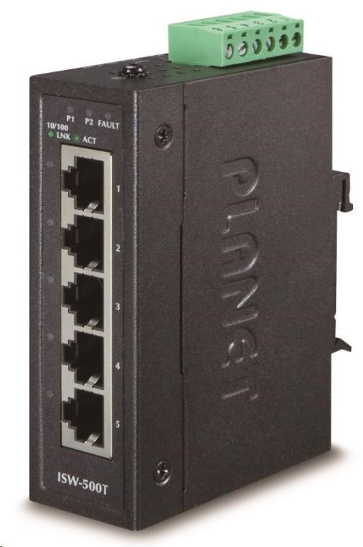 Planet ISW-500T Switch, 5x 10/100Base-TX, ESD, DIN, IP30, -40~75°C