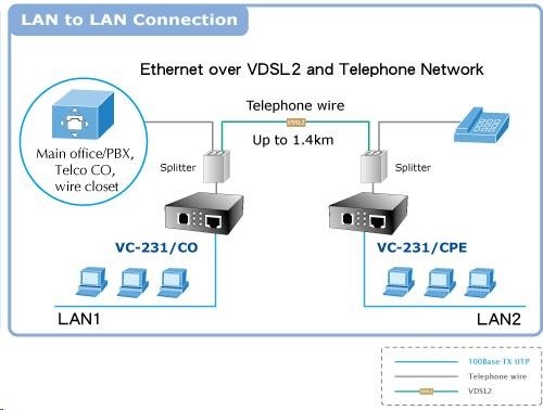 Planet VC-231, Eth. VDSL2 konvertor, 100Mbit, master/slave, RJ-11Eth. VDSL2 konvertor, 100Mbit, master/slave, RJ-11.