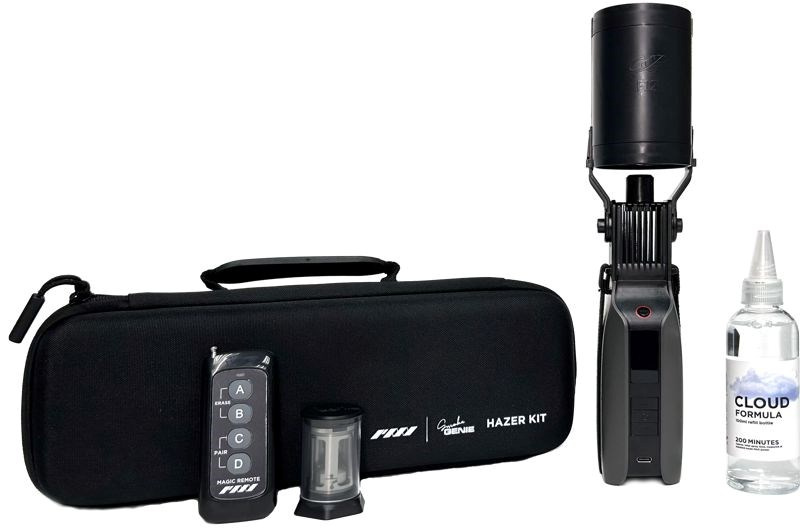 Sada SmokeGENIE Hazer Kit, která umožňuje nezávislým tvůrcům vytvářet efekty mlhy, oparu, nízko visící mlhy a suchého ledu, je univerzální ruční zařízení, které poskytuje okamžitý kouř kdekoli a kdykoli. Rychle jím zamlžíte místnost a vytvoříte filmovou atmosféru nebo jej můžete použít venku při natáčení v náročných podmínkách.