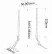 Nožky na televizi s nosností 50kg, na Tv 37" až 65", výškové nastavení Stabilní podstava na televize, univerzální, vhodné na všechny typy, velikosti a značky televizorů s podporou VESA standardu. Výškové nastavení, nosnost 50kg, barevné provedení černé, záruka 3 roky. Balení obsahuje sadu instalačního materiálu. Podstavec na televizi, nožky na Tv Ergosolid Castor 1 Technické údaje: nosnost 50kg podpora VESA standardů 100x100 až 800x500 doporučená úhlopříčka Tv 37" až 65" výškové nastevení 620mm až 683mm šířka podstavců 356mm protiskluzové podložky minimalistický design stabilní, bezpečný materiál ocel instalační materiál barevné provedení černé záruka 3 roky Ergosolid Castor 1 podporuje VESA standardy: VESA 100x100 VESA 200x100 a 100x200 VESA 200x200 VESA 300x100 a 100x300 VESA 300x200 a 200x300 VESA 300x300 VESA 400x200 a 200x400 VESA 400x300 a 300x400 VESA 400x400 VESA 600x400 VESA 800x400 VESA 800x500.