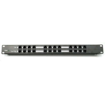 Panel integrující 12 pasivních POE injektorů vhodný pro napájení až dvanácti zařízení.Profesionální řešení pro vzdálené napájení většího počtu aktivních prvků s integrovaným extraktorem po UTP kabeláži.