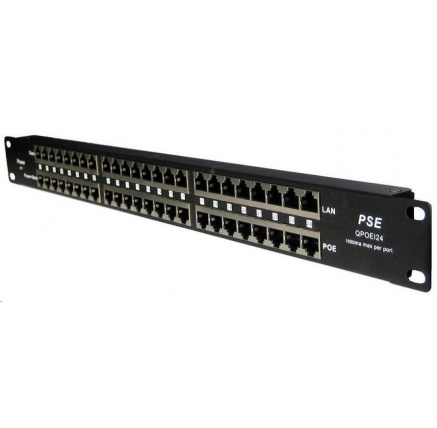 Panel integrující 24 pasivních POE injektorů vhodný pro napájení až šestnácti zařízení.Profesionální řešení pro vzdálené napájení většího počtu aktivních prvků s integrovaným extraktorem po UTP kabeláži.