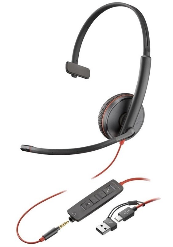 Poly Blackwire 3215 náhlavní souprava, 3.5 mm jack + USB-C/A adaptér, mono (bulk)