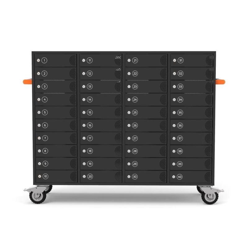 Tento cabinet dokáže nabíjet, bezpečně ukládat a spravovat až 40 tabletů, notebooků, mobilních telefonů a dalších elektronických zařízení.