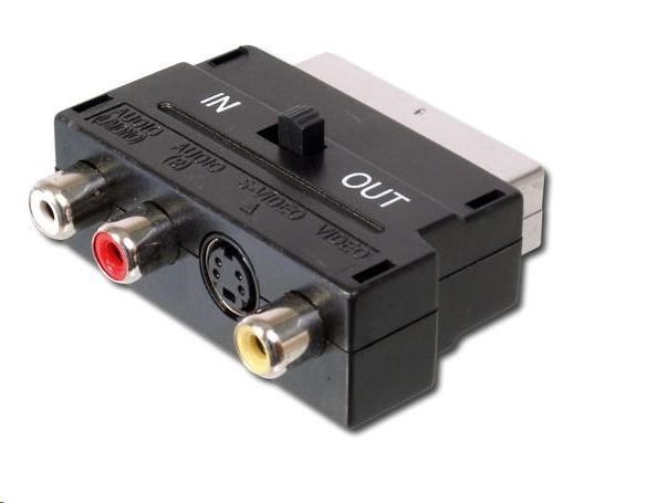 PremiumCord Adapter SCART-3x cinch + S-video s přepínačem IN/OUT