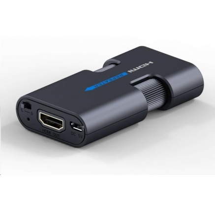 - Nevyžaduje napájení, je napájen s HDMI sběrnice, v případě, že HDMI sběrnice nedává dostatečný proud pro napájení extenderu, potom je nutné extender napájet 5V přes micro USB konektor.Toto napájení je možné realizovat z USB portu kabelem s micro USB konektorem nebo nabíječkou 230V s výstupním konektorem micro USB.