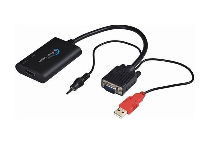 - Převádí signál HDMI na analogové VGA + audio pro LCD nebo TV