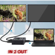 2 HDMI zařízení sdílejí 1 HDMI obrazovku nebo přepínač z jednoho zdroje HDMI signálu přepíná na dva monitory (vždy se zobrazuje obraz pouze na jednom z monitorů). Výběr zařízení je tlačítkem na přepínači.