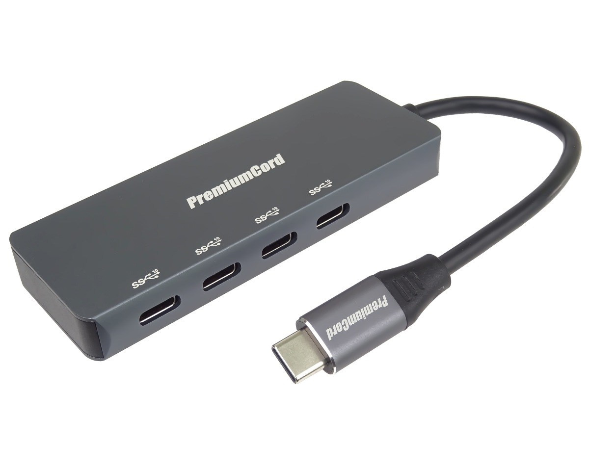 PREMIUMCORD Hub USB-C na 4x USB 3.2 Typ-C, 5G SuperSpeed, Aluminum