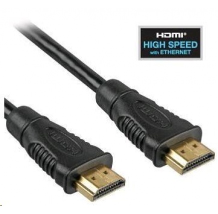 Kvalitní propojovací kabel pro spojení dvou audio/video zařízení přes moderní HDMI rozhraní, jako je např. HD-DVD/BluRay přehrávač a LCD/Plazma televizor. Kabel je stíněný, dokáže přenášet digitální zvuk i obraz a podporuje digitání ochranu obsahu HDCP. Kabel má navíc integrován vysokorychlostní přenos ethernetu. - Kabel byl dříve označován jako HDMI 1.4 High Speed , dle nové direktivy je správně označován jako HDMI Ethernet kabel - Pozlacené konektory: HDMI typ A (19pinů) male <=> HDMI typ A (19pinů) male - Délka kabelu: 10 m - Rozlišení: Až 4096 x 2160 bodů nebo nižší podporované formáty 1080p FULL HD/1080i/720p/720i - Podporuje : HDMI 1.4 a nižší - Podporuje: 4K, Deep Color, 3D, xvYCC (xvColor), auto lip-sync, ARC, CEC, HDCP, Dolby TrueHD, HEC - Přenosová rychlost 10,2 Gb/s - Šířka pásma 340MHz - 3D video po HDMI připojení - Barevná hloubka: 24-bit (16.7 million barev). - Třívrstvé, vysoce kvalitní stínění - Zpětný audio kanál pro poslání signálu z tuneru TV zpět do domácího kina/surround systému - Přenos počítačové sítě (ethernetu) po HDMI kabelu - 19žilový kabel, dvojitě stíněný, AWG28 - barva černá.