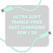 Super měkký silikonový kabel účinně zabraňuje zamotávání a zároveň zajišťuje maximální flexibilitu – žádné další lámání kabelu, a to ani při častém používání.