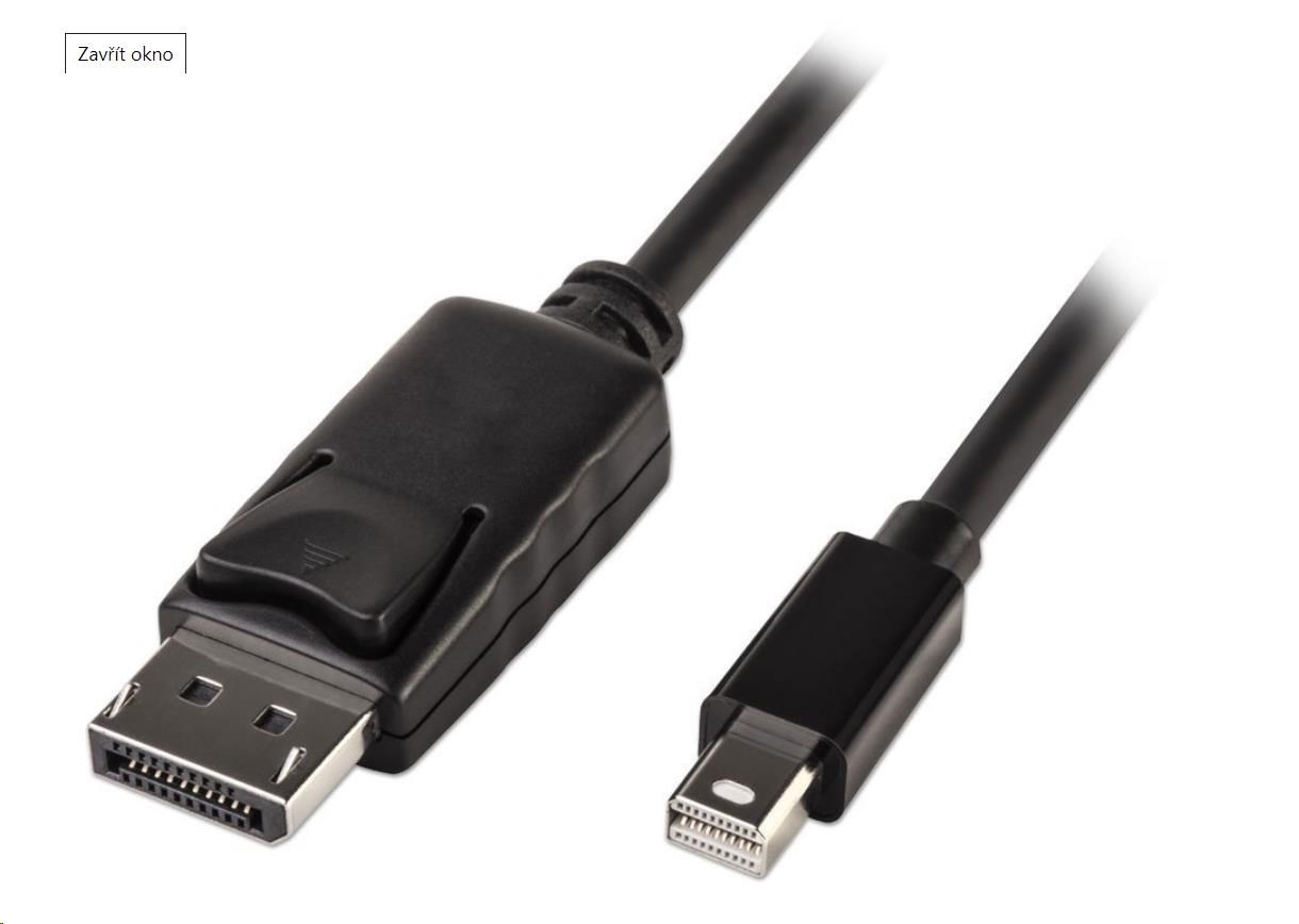 - Konektory: Mini DisplayPort (20pinů) male <=> DisplayPort (20pinů) male