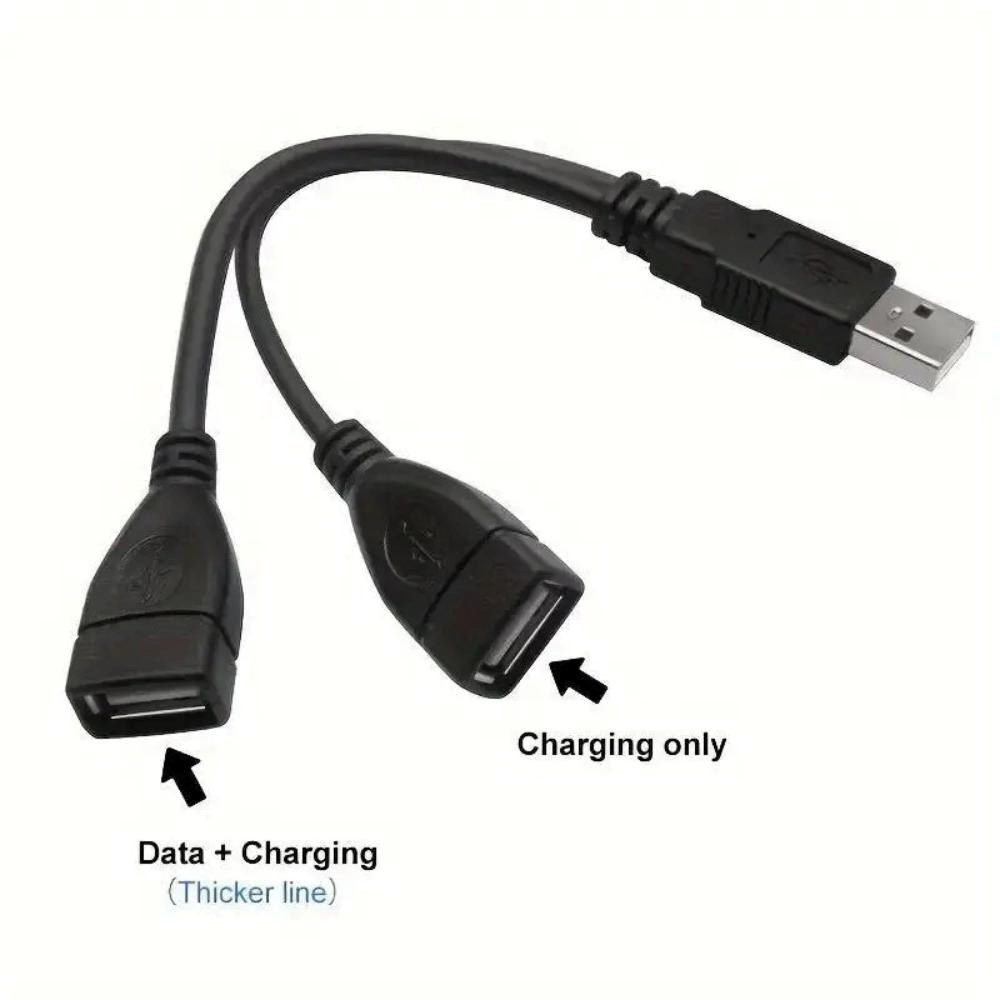- Y kabel slouží pro připojení dvou USB mobilních telefonů nebo USB zařízení do USB portu, obě mohou být současně nabíjena nebo napájena.Současně jedno zařízení může přenášet data.