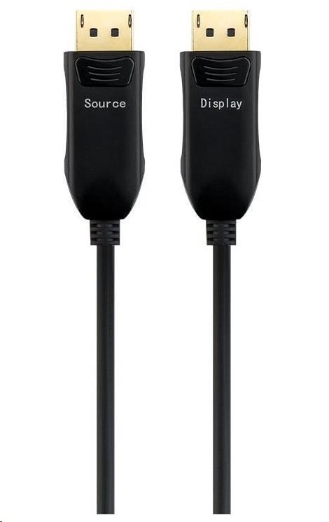 PremiumCord Optický DisplayPort 1.3/1.4 přípojný kabel M/M, zlacené konekt. 50m