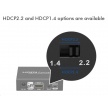 - Umožňuje propojit zařízení s různou verzí HDCP 2.2 a HDCP1.4 , k tomu slouží nastavitelný přepínač