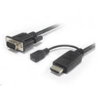 Kabelový převodník HDMI na VGA s napájecím micro USB konektorem - černý - Adaptér je určen pro počítače nebo notebooky s výstupem HDMI, pro převod obrazu na analogové VGA. - Vstup: HDMI konektor - male (kompatibilní s HDMI 1.4 a DVI 1.0 ) - Výstup: VGA konektor DB15 - female (kompatibilní s VESA VSIS v1r2 specification) - Převodník umožňuje propojit zařízení s výstupním signálem HDMI na zobrazovací zařízení nebo TV, monitor s VGA konektorem - Podporuje: HDCP1.0/1.1/1.2; HDMI1.1/1.2/1.3; - Technologie Plug and play; - Podporuje rozlišení: 480i/576i / 480p / 576p / 720p/1080i / 1080p / 60Hz; VGA výstup: 480i/576i / 480p / 576p / 720p/1080i / 1080p / 60Hz - Podporuje FULL HD 1080P (1920*1080P@60Hz) - Maximální rozlišení 1920*1200@60Hz. - Malá spotřeba: 130mA. - Napájení s HDMI (5V). - V případě nutnosti, pokud nestačí napájení z HDMI portu, použijte napájení adaptéru pomocí USB kabelu s micro USB konektorem, který zapojíte do micro USB tohoto převodníku (např.ku2m05f) Dálší možností přídavného napájení je použít napájecí adaptér 230V - 5V/1A s micro USB konektorem - Délka 2m - Barva: černá.