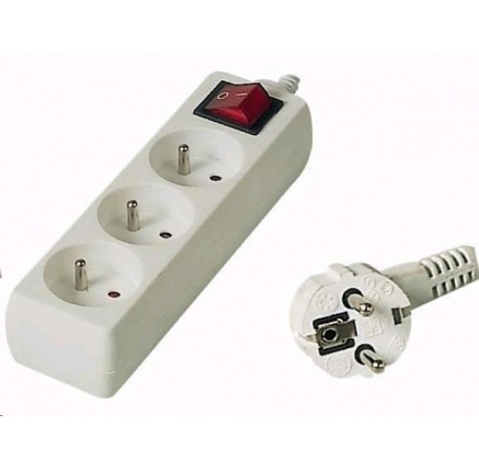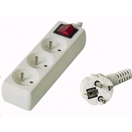 PREMIUMCORD Prodlužovací přívod 230V 2m, 3 zásuvky + vypínač, bíláSpecifikace kabelu / redukce:Prodlužovací 230V.
