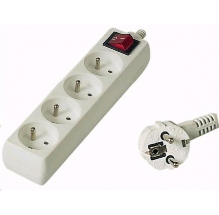 PREMIUMCORD Prodlužovací přívod 230V 3m, 4 zásuvky + vypínač, bíláSpecifikace kabelu / redukce:Prodlužovací 230V.