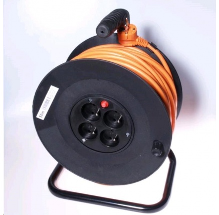 Prodlužovací kabel 230V na bubnu. Snadná manipulace, skladný. - oranžový kabel, černý buben - 250V, max. zatížení 16 A/3000W (max.zatížení 5 A/1100W navinutý) - baleno po 1ks - 4x zásuvka s tepelnou pojistkou, 1x zástrčka - délka kabelu 25m - průřez vodiče 3x1,5mm2 - vodič (PVC) H05VV-F3G - barva vodiče: oranžová - z bubnu se odvíjí kabel a na konci je zástrčka (male).