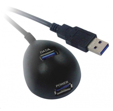 USB 3.0 stolní držák USB zařízení 1.8m M/F Kvalitní a decentně provedený prodlužovací kabel moderního rozhraní USB 3.0 se stolním držákem konektoru. Můžete si tak na stole zřídit jednoduše dosažitelný port například pro flashdisky, multimediální přehrávače či jiná často používaná zařízení. Kabel je v černé barvě a o délce 1,8 metru. - 1x datový port USB3.0, 1x port pro napájení/nabíjení dalších zařízení - držák pro USB3.0 zařízení na stůl - podporuje USB3.0 rychlost 5Gbps datový přenos což je 10x rychlejší než USB2.0 - zpětně kompatibilní s US2.0 a USB1.1 - vhodné pro flash disky, myši, kamery, pro nabíjení mob.telefonů.... - pozlacené kontakty konektorů - délka kabelu 1.8m - zabudovaný magnet pro připevnění na kovovou plochu - černý.