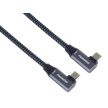 PremiumCord USB-C 2x zahnutý kabel ( USB 3.2 GEN 2x2, 5A, 100W, 20Gbit/s ) bavlněný oplet, délka: 1m