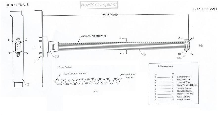 PREMIUMCORD Záslepka 1x sériový port (bracket Canon 9M, RS232, COM)Specifikace kabelu / redukce:Vývod z MB.