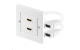 HDMI zásuvka v panelu 2x HDMI A - 2x HDMI A Female/Female - HDMI typ A (19pinů) female <=> HDMI typ A (19pinů) female - Barva bílá, rozměry 85mm x 85mm - Pozlacené konektory - Délka kabelu 17cm - Z panelu lze vyjmout vnitřní čelo o rozměrech 50mm x 50mm s HDMI kabelem a lze zacvaknout do systému zásuvek a rámečků ABB LEVIT.